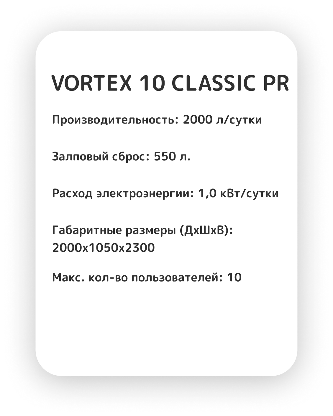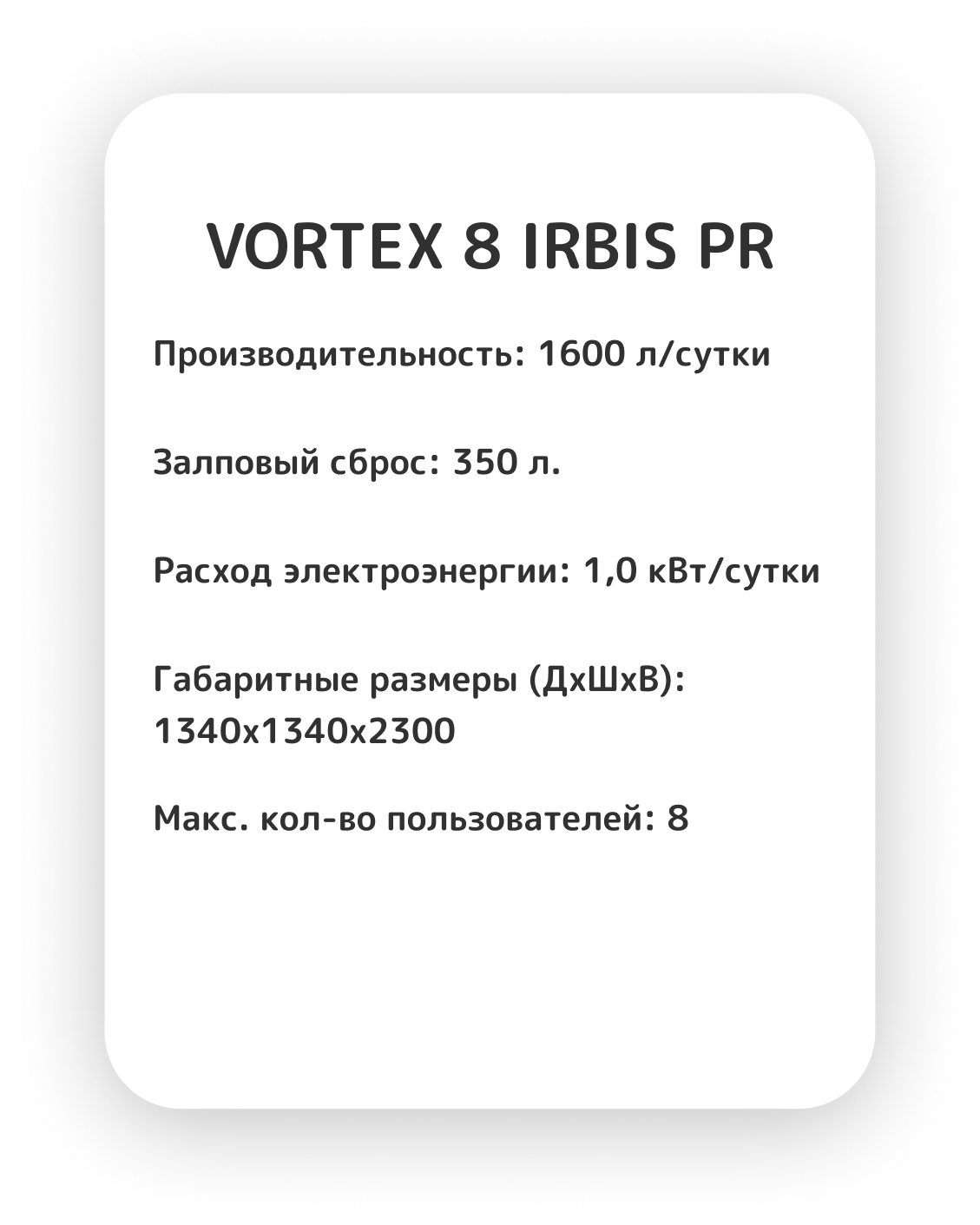 Для получения полного прайса, пожалуйста, звоните! Станции Vortex разработаны для обслуживания домов, где проживают от 2 до 10-12 человек одновременно и круглогодично.